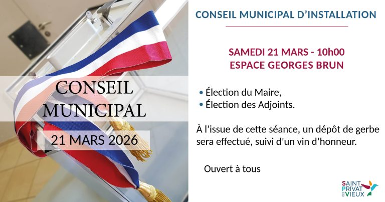 Conseil municipal d’installation samedi 21 mars 2026 à l’espace Georges Brun.